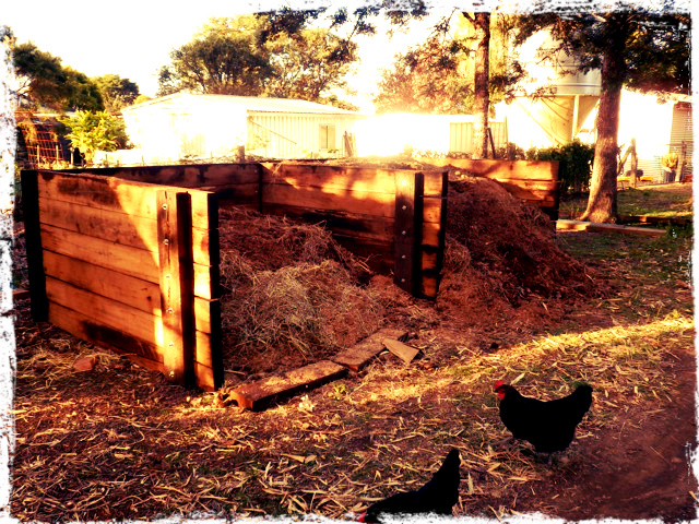 Stable bedding & manure compost bays. Chickens get to have a free romp over the piles at their leisure.